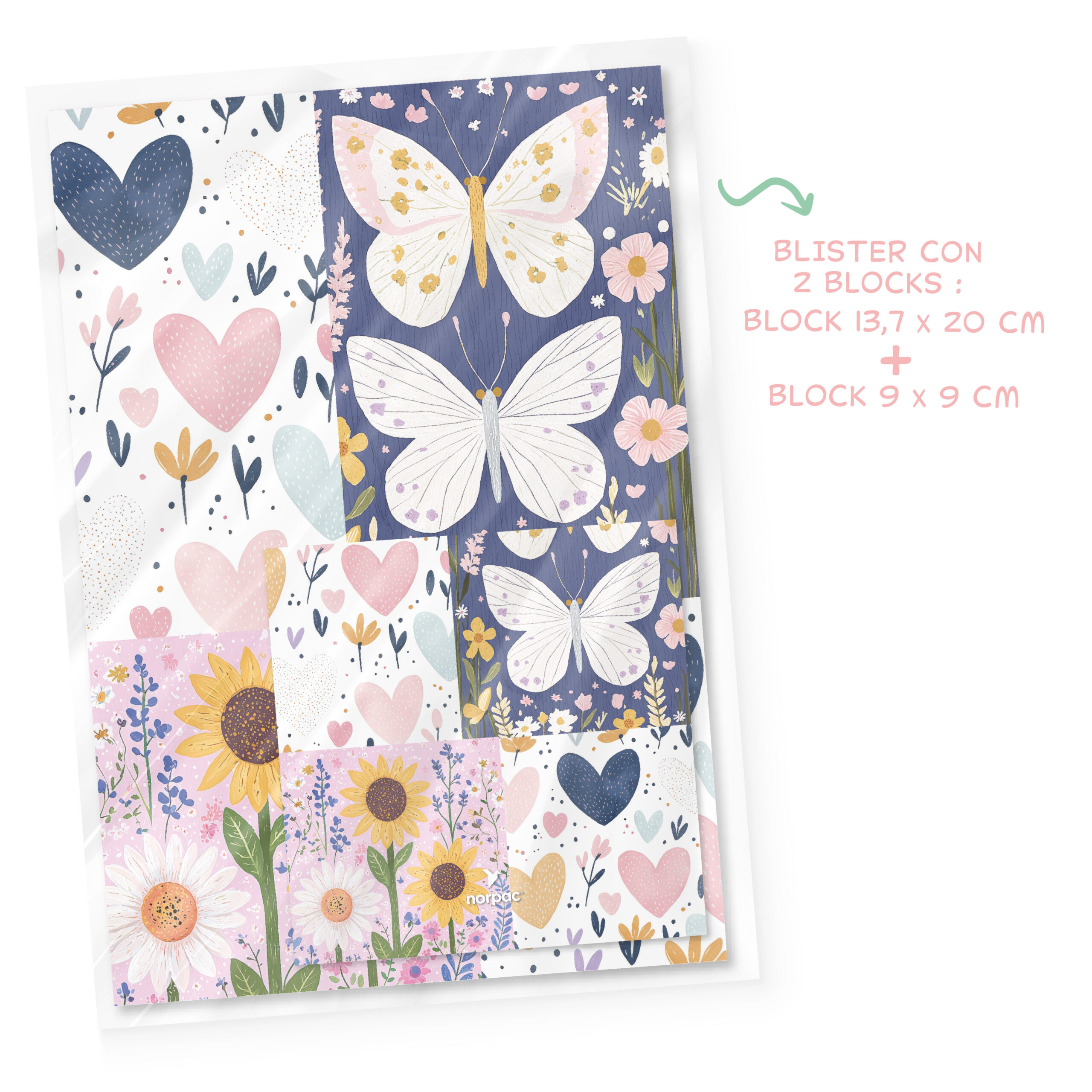 Blister con: Block 9 x 9cm + Block 13,7 x 20cm